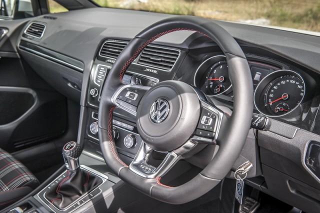 This GTI is powered by a turbocharged petrol direct-injection engine (TSI) with 220 PS. Possibly one of the most important properties of the new Golf GTI – related to the interior – is the fact that the car simply fits – as though cast to be ergonomic. The driver simply opens the door, sits down on the standard sport seat, adjusts it, adjusts the height and length of the sport steering wheel, buckles up, starts the engine, puts the hand on the gear shift lever and drives off.