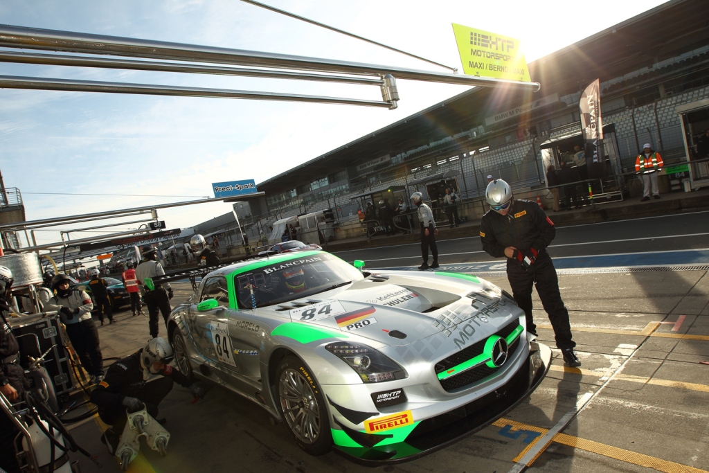 Maximilian Buhk has won the Blancpain Endurance Series Pro Cup title after a superb victory in the Nurburgring 1000 with Maximilian Gotz and Bernd Schneider in the HTP Motorsport Mercedes. The #84 SLS, which also won the Spa 24 Hours in July, led much of the race but Buhk had to overhaul the #3 Marc VDS Racing BMW in the final hour in order to win the championship for himself. The HTP car led from pole position but a late change of brake pads when Buhk took the wheel promoted the BMW into the lead with Maxime Martin behind the wheel. Buhk got down the inside at turn one only for Martin to move back ahead on the exit, but the Mercedes driver eventually took advantage of traffic to make a brave pass into the chicane and went on to win by 18 seconds.