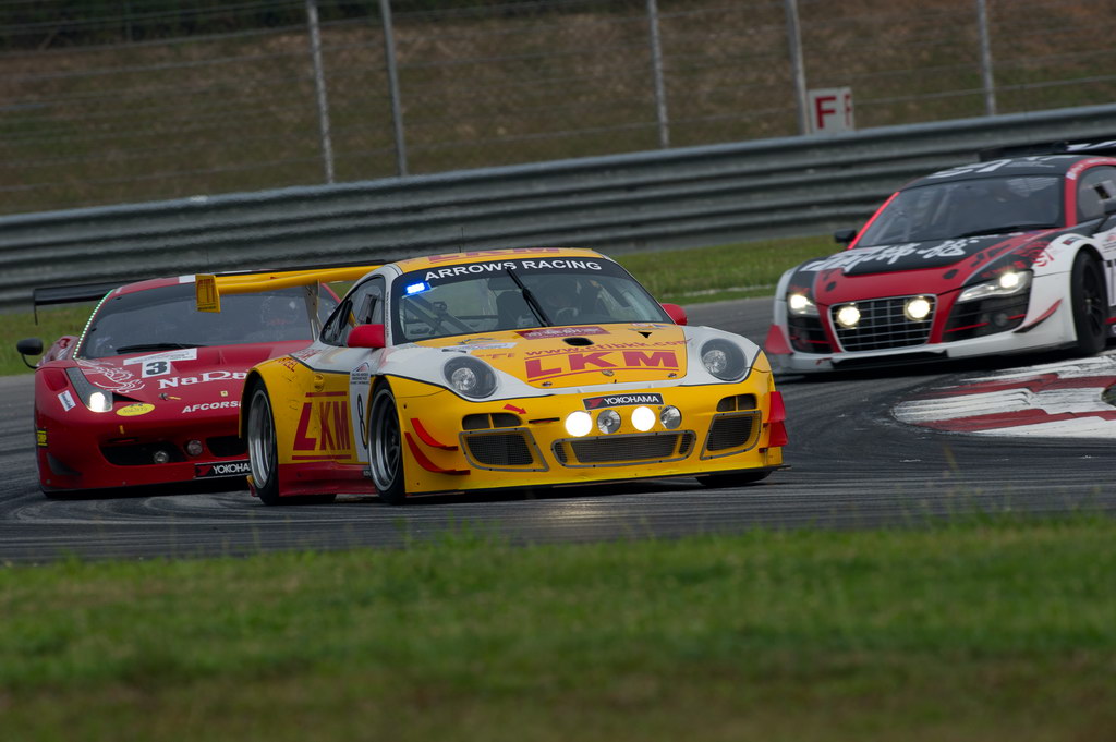 After an intensive nine hours of competition the MMER 2013 leader board has produced some surprising results. Setting the pace at the top of the time sheets is Clearwater Racing in their Ferrari 458 Italia GT3, followed closely behind by Italian race outfit, AF Corse and their 458 GT3. Australian team Roger Lago in the Lamborghini LP560-4 is in third followed by Nexus Naza Racing in the Ferrari 458 Italia GT3 and LKM Racing in the Porsche GT3R in fifth place.