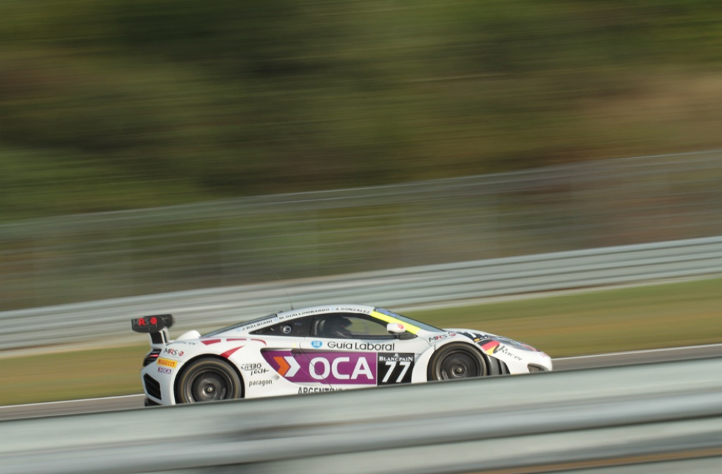 Last weekend the MRS team season’s finale of the Blancpain Endurance Series took place. At the 1,000 km race Nürburgring the MRS team started with a McLaren MP4-12C GT3. The work behind the steering wheel for the 6 hour race was shared by the Austrian Philipp Eng and the two Argentinean Mauro Giallombardo and Alejandro Gonzalez. In the field of the 50 strong engaged GT3 cars Philipp Eng could reach a good starting position in the 11th grid. Also there still was potential!