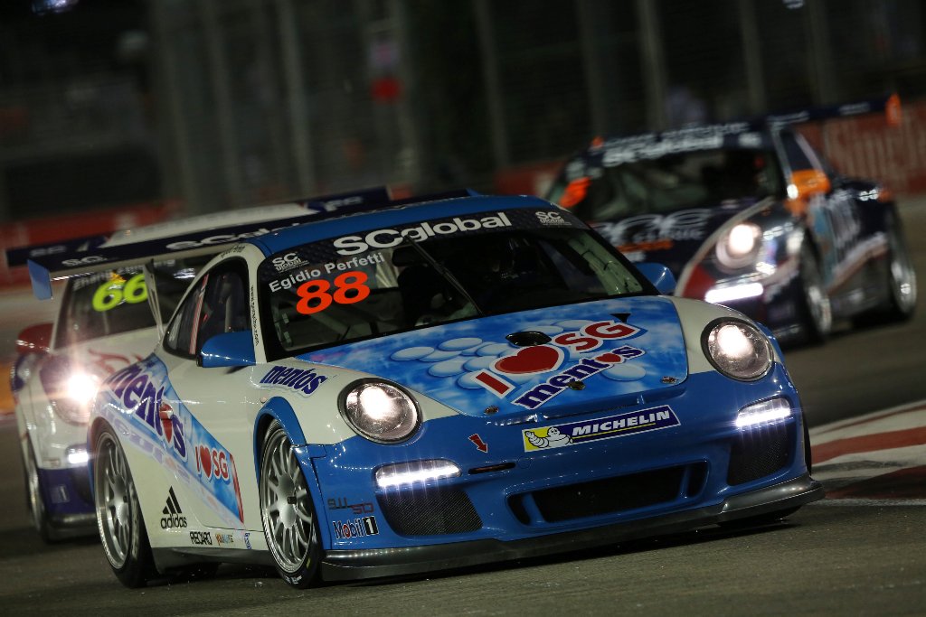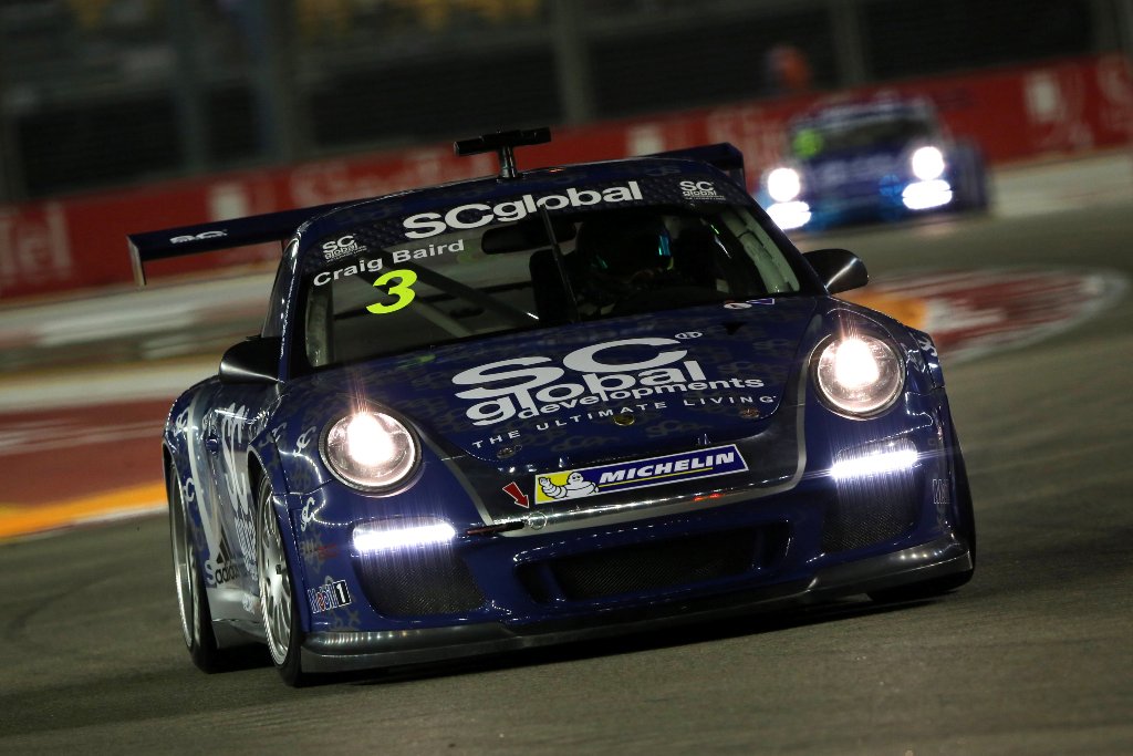 Porsche Carrera Cup Asia championship leader Earl Bamber of Nexus Racing snatched pole position for the Porsche SC Global Carrera Cup Asia – Singapore 2013 under the sparkling lights of the Lion City in the 30-minute nighttime qualifying session at the 2013 FORMULA 1 SINGTEL SINGPORE GRAND PRIX. Joining Bamber, who is racing this weekend in Michelin livery, on the front row of the grid for Sunday’s 12 lap thriller will be SC Global Racing’s Craig Baird, a fellow New Zealander and winner of the race for the last two years. Reigning champion Alexandre Imperatori of PICC Team StarChase and 2013 title contender and pole man in Singapore last year, Team Eagle’s Martin Ragginger, make up the second row of the grid.