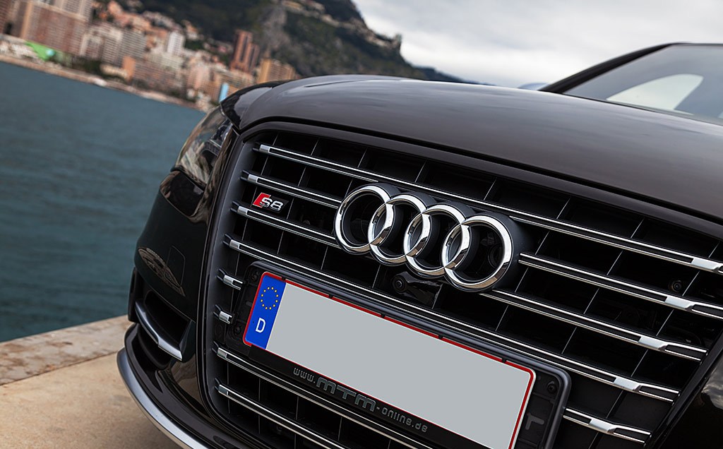 This is the Audi S8 reworked by MTM black. Its fenders are filled with 305/30 ZR 21, fitted on 10.5 inch wide MTM bimoto wheels. Majestic even when stationary, blending with the backdrop of the beautiful and fast yachts, as if to the manner born. However, a second glance espies three tell-tale letters testifying to this saloon’s special status. MTM, a discreet white on black, is to be discerned forward of the rear wheel housing. Namely, a special Audi S8, one from the high tech laboratory of MTM, a stone’s throw from the premium manufacturer in Ingolstadt.