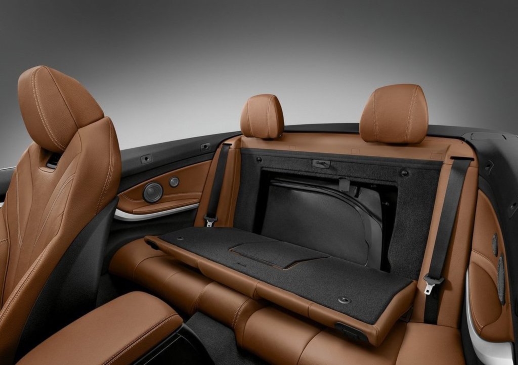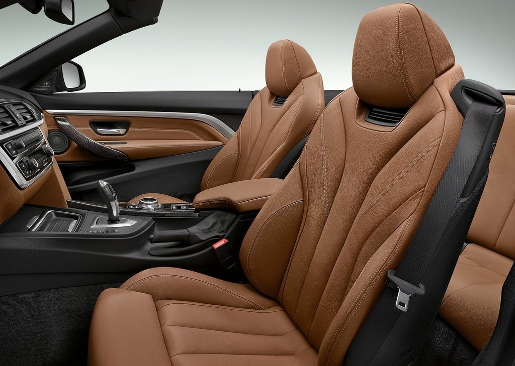 The design language of the new BMW 4-Series Convertible is reflected in the car’s unmistakable and elegant silhouette with balanced proportions when the top is down, and in the sleek look of the roofline – without a B column – when the hardtop is closed. The three-piece retractable hardtop of the BMW 4-Series Convertible is distinguished by advanced soundproofing with its “noise-absorbing” headliner, ensuring quietness and genuine passenger comfort under all weather conditions – even in winter. The interior roof is fully lined and features lamps that add to the ambience expected of a premium sport coupe. When the top is down and stored in the boot, the standard load and unload assistance function pivots the folded roof in the luggage compartment upwards to provide ample storage space and easy access. Thus even large and bulky items and luggage can be conveniently stowed when the top is down. The low and sporty seats ensure more headroom as well as added rear legroom.