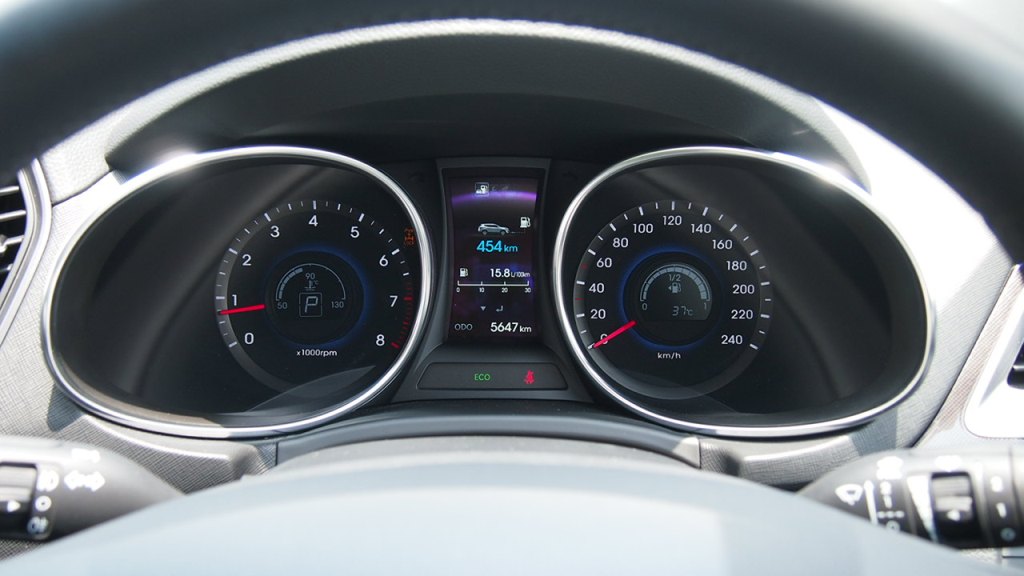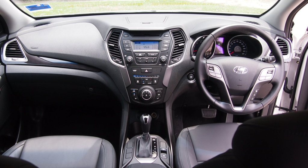 First we try the diesel powered Santa Fe. This diesel engine pumps out 197hp and a prodigious 436Nm of torque on tap from only 1800rpm and channelled to all four wheels via a smooth shifting 6-speed automatic gearbox. On the road the powerplant makes light work of the Santa Fe’s well proportioned bulk and will hurl the big SUV down the road with aplomb, reaching 100km/h from rest in just over 10 seconds. As ever, the benchmark undermines the actual real world strength of the Santa Fe’s diesel performance, which is impressively muscular. The 6-speed gearbox suits the engine perfectly and keeps it spinning in the heart of the torque curve smoothly and efficiently. It also works well to give the Santa Fe class leading economy and emissions. Delivery is smooth at all gears and even in heavy traffic the diesel clatter is negligible inside the cabin. All in all, this is Hyundai’s world class engineering excellence in full effect.