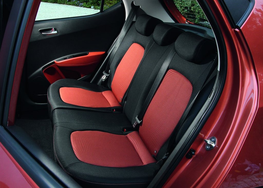 Inside, the i10 offers a broader choice of seat trim options than previously seen. Base models come with a combination of cloth and vinyl in beige and black. Mid-specification models have tricot cloth in blue or orange with woven side panels in black. Premium models are similarly equipped, but also offer the option of woven pattered cloth in red with black leather-like side panels.