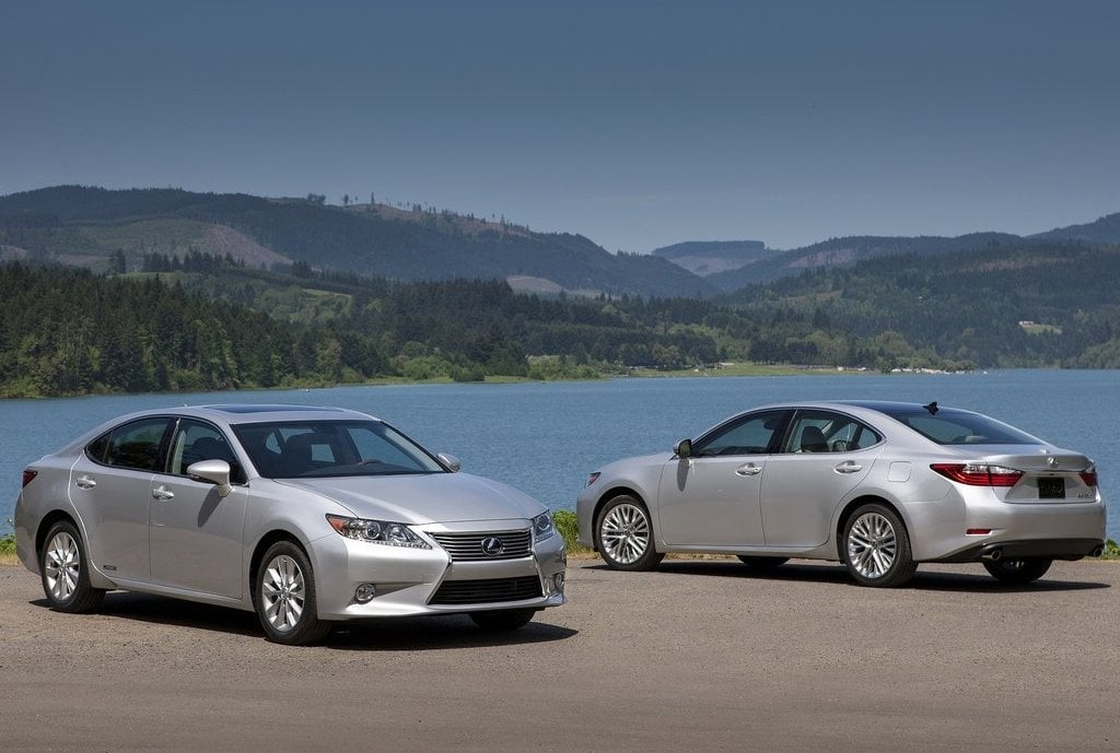 The new ES bears the new face of Lexus with its distinctive, spindle grille. The “L” design motif is reflected in the LED daytime running lights and combination rear lamps. Fog lamps are integrated into the sculpted lower front bumper fascia. The Lexus ES350 sports dual exhaust pipes, while the ES300h features an exclusive rear design with hidden exhaust and an integrated rear spoiler. Other details specific to the hybrid include unique blue badging and exclusive 17-inch alloy wheels.