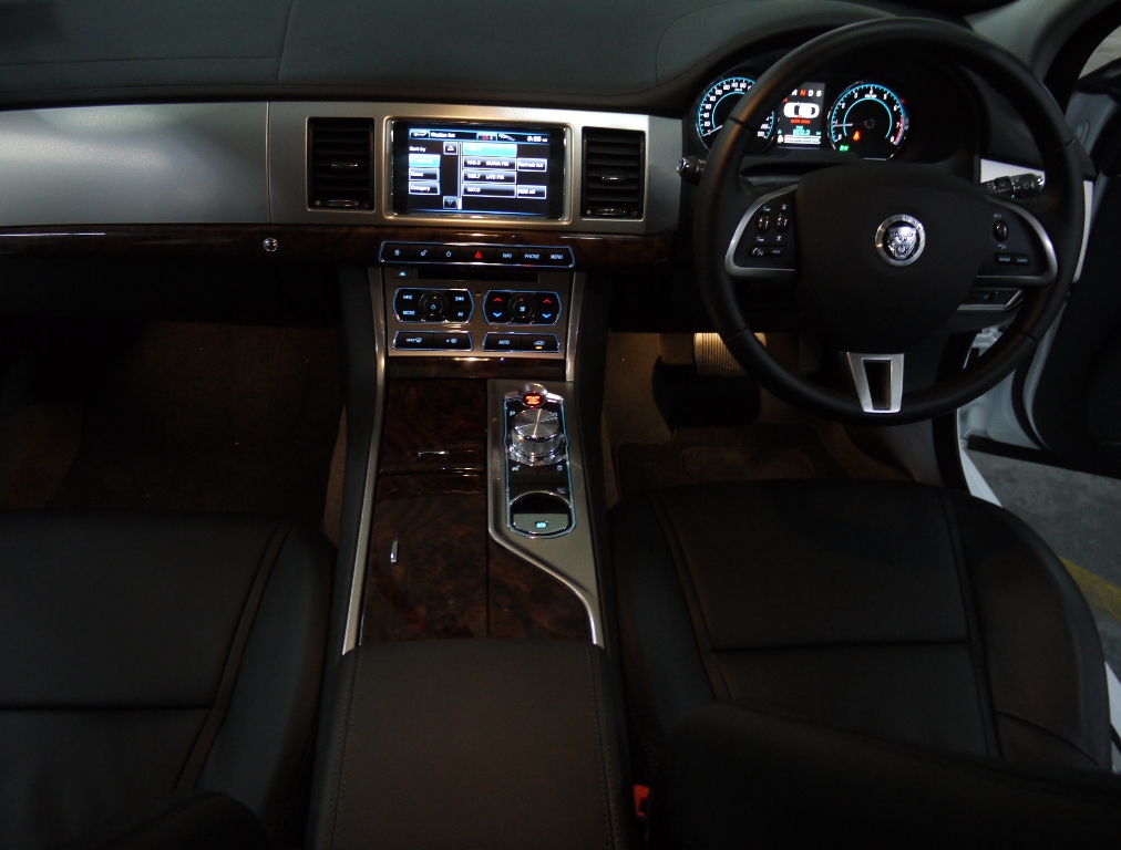 The XF’s engine produces 240 horsepower and it gets a little bit overwhelmed by the XF’s weight in city traffic where the engine needs a little more of the rev-counter’s sweep before it really feels exciting. The automatic transmission is smooth. Drive this XF in manual and it gets much better. The manual progress reveals the 340Nm of torque and this carries the XF through a sequence of corners well. Despite a pleasingly comfortable ride, there is precious little body roll, even when the tyres are beginning to protest. The exemplary body control is also illustrated by a lack of pitch under acceleration or dive under heavy braking. On top of that, the steering offers about as much communication as other cars in the class, which is all that is required of an executive model really.