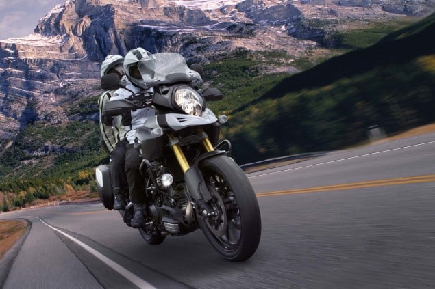 Suspension is handled by a fully adjustable KYB 43mm inverted fork up front and a tool-less 20-position preload-adjustable shock in the rear. The big V-Strom is fitted with new radial mount Tokico mono block front-brake calipers. ABS is now standard equipment. There are also new 10-spoke cast-aluminum wheels with a higher speed-rated Bridgestone tires. A new 12-volt DC socket has been added to power a GPS or other gadgets.