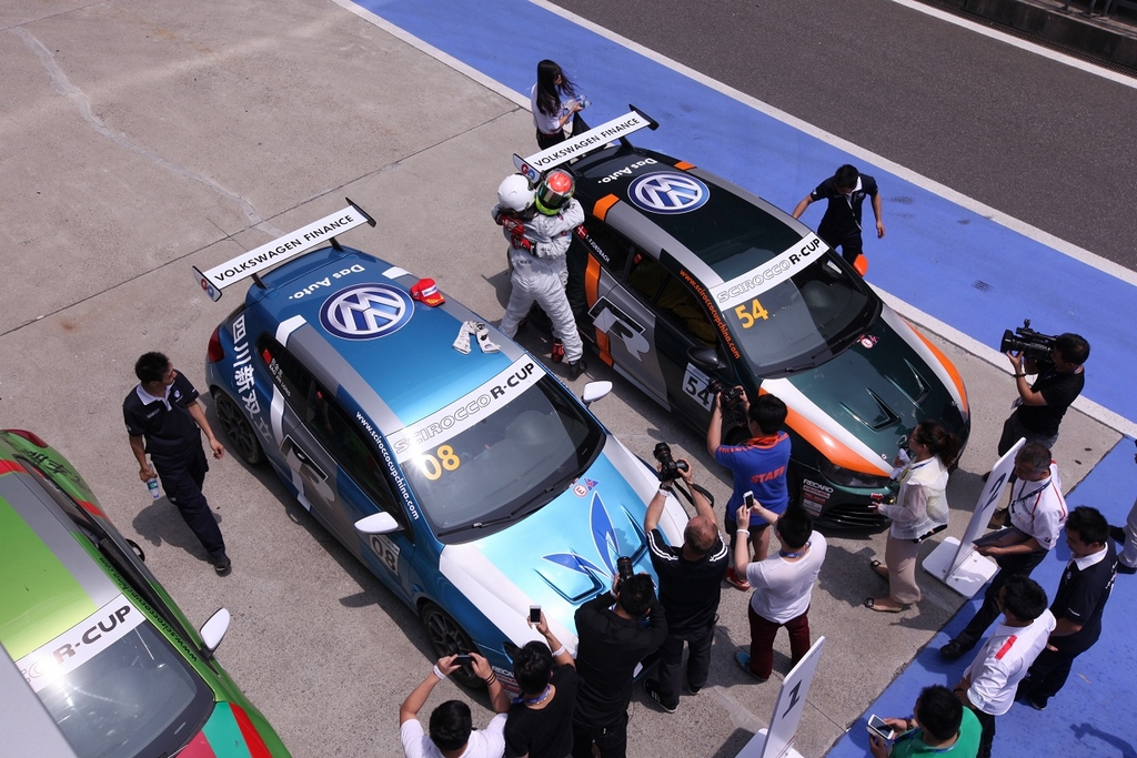 An ecstatic Bao Jin Long has won this year’s Volkswagen Scirocco R-Cup China. The Chinese driver only needed one third and one second place at the season finale in Shanghai to win the series. Although his arch-rival Andrea Reggiani (I) put in a better performance this weekend with one win and one second place, Bao Jin Long was more successful throughout the course of the year and finished at the top of the points table with 156 to 150. The first race was won by Thomas Fjordbach, who led from start to finish. The Dane ended the season a strong third overall.