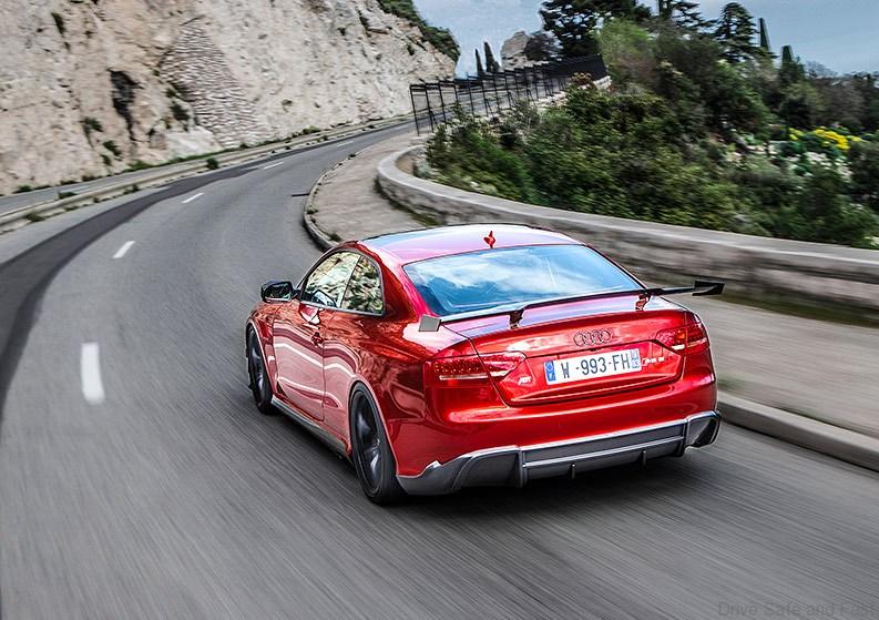 The ABT RS5-R’s motor sport DNA is also revealed in the interior of black and red Alcantara. Racing stripes on the sport-type bucket seats, carbon door panels, 4-point safety belts and a roll cage adorn the driver’s “work station”. The sport-type steering wheel is ergonomically perfect and features an LED shift indicator and a carbon-Alcantara mix of materials. Time to get yours now.
