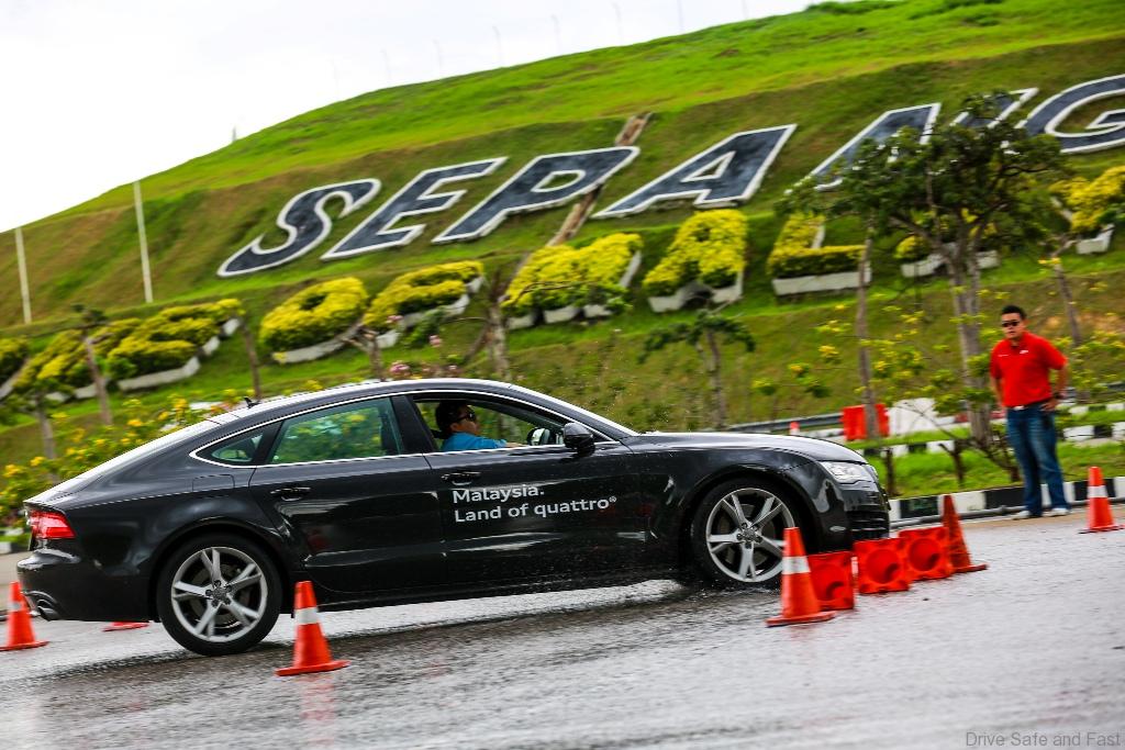 The on-road exercises held at Sepang International Circuit simulated more demanding driving situations to test the handling and performance of the quattro® drive system. These included simulations of emergency situations whereby participants were given the opportunity to test accident avoidance manoeuvres in wet and slippery road conditions in the Audi sedans.  The permanent all-wheel drive system performed with impressive driving dynamics coupled with precise handling qualities thanks to the combination of high traction and lateral stability.