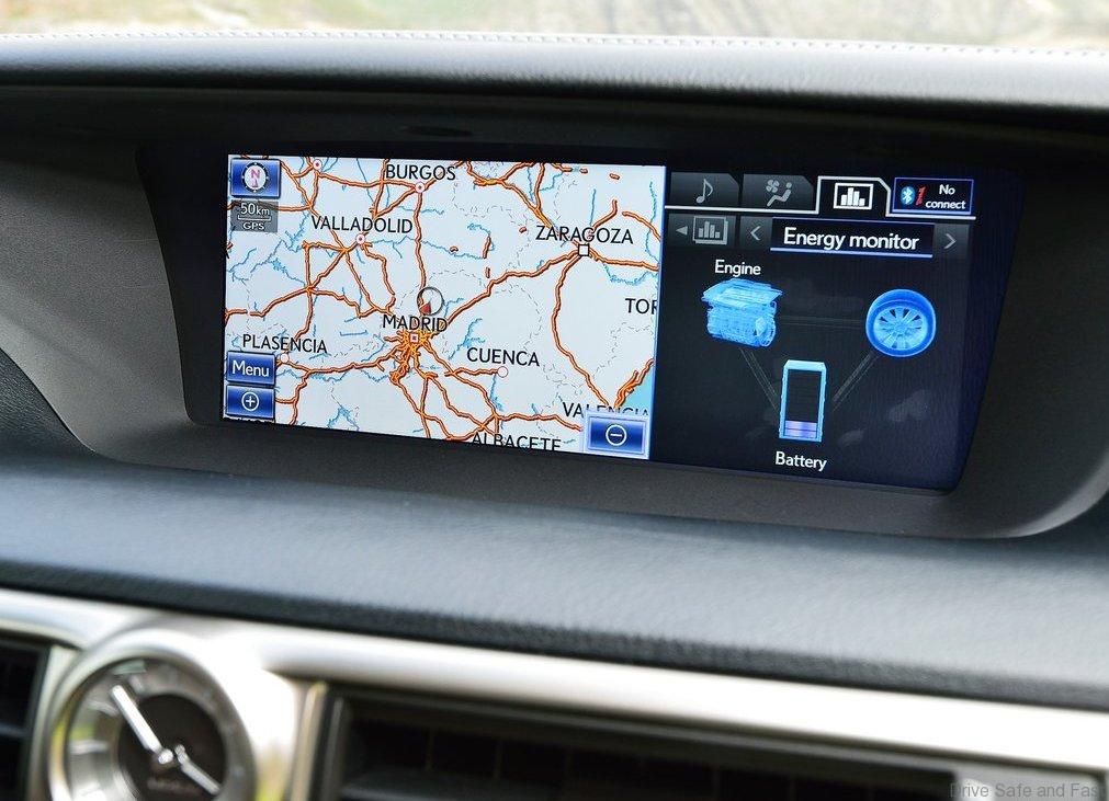 The introduction of the GS 300h sees the GS range interior additionally enhanced by a new, boot-type shift lever design and the availability of a new, colour Head-Up Display (HUD) system.