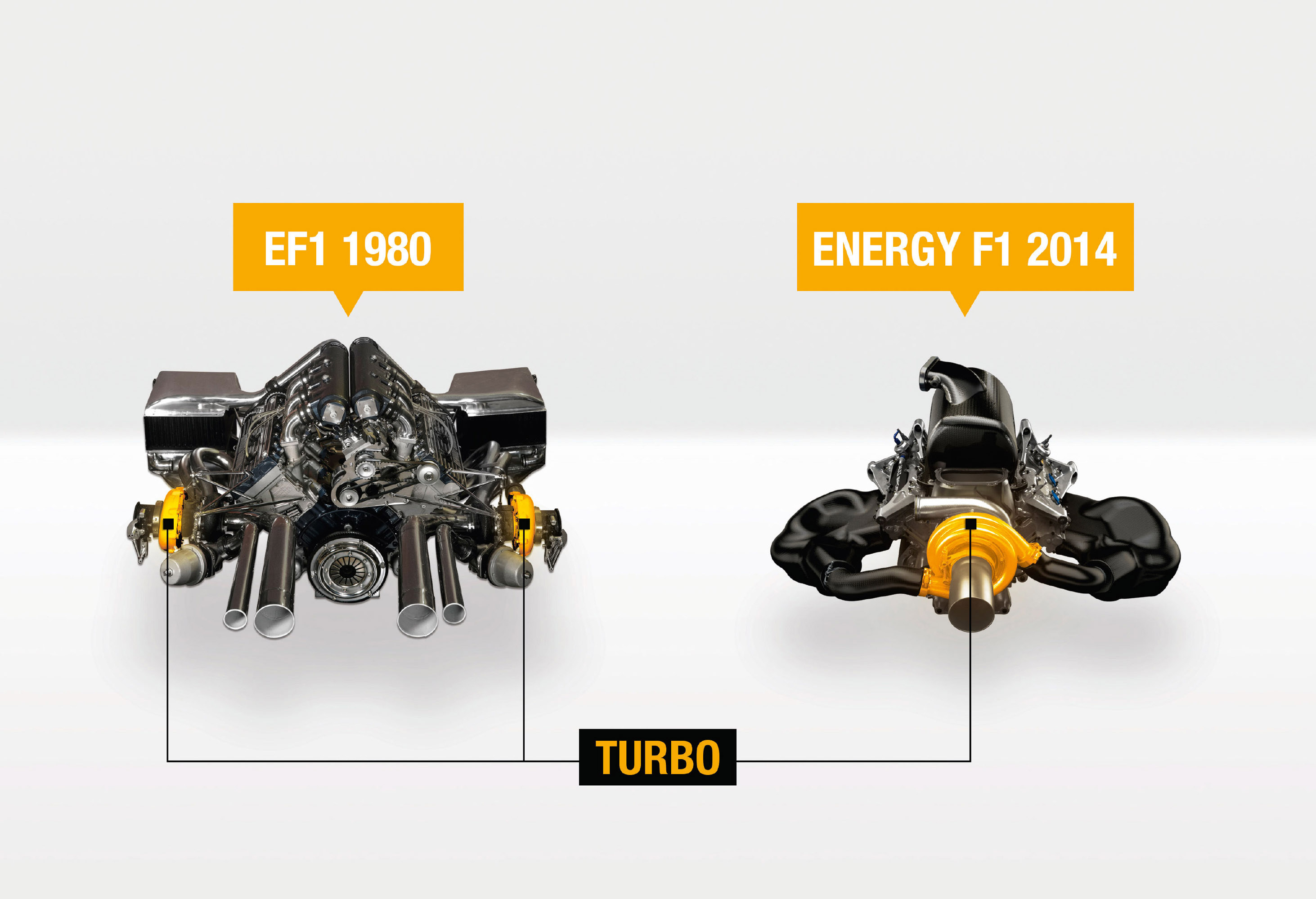 The 2014 FIA Formula One World Championship is introducing a radical technical regulation changes. The cars that will compete will be powered by new powertrain technology, with a powerful turbocharged internal combustion engine coupled with energy recovery systems. Furthermore, the power output will be increased up to unseen levels in over five years. Two types of energy will propel the cars – internal combustion and electrical energy. The first unit will produce power through consumption of traditional carbon-based fuel, while the second will be harvested from exhaust and braking by two motor generator units. Of course, both will work in harmony. Such engines are to be called now “Power Units”. Since these announcements have been made, Renault came up with the statement that it is entirely prepared for this technical revolution by introducing the Energy F1-2014 Power Unit.