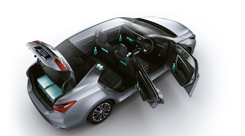 Inside, you’ll notice that this Corolla benefits from a 100 mm increase in wheelbase length from 2,600 mm to 2,700 mm, the all-new, high quality interior design offers customers a superior cabin environment. It features a more spacious and comfortable cabin including a substantial increase in rear seat legroom, more comfortable seats and a greater boot capacity.