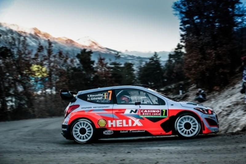 Sebastien Ogier gave his local fans a little bit of hope with a fastest time on SS5. He opted to use two winter tyres and two super-soft slicks on his VW Polo R WRC and it was a combination that worked in the muddy conditions that he encountered. He was 6.5s faster than his team-mate Jari-Matti Latvala to leap up to fourth place overall.