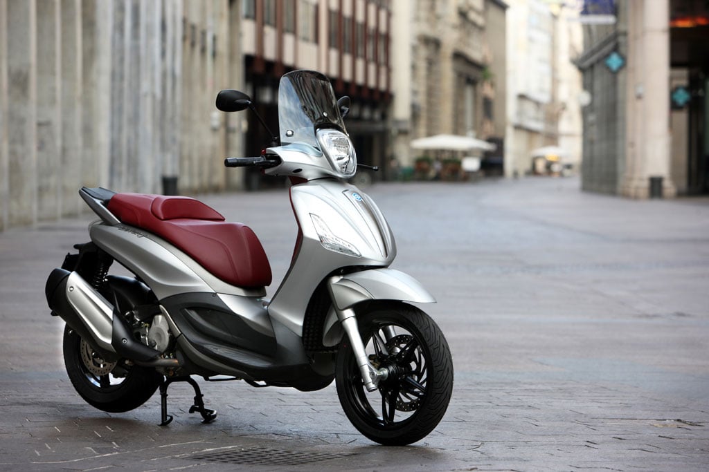 • New Piaggio four-valve, liquid cooled, electronic-injected engine