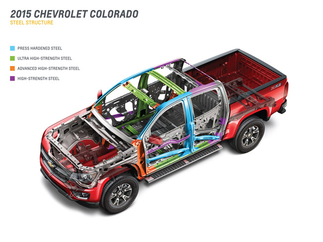To be more precise, the savings in weight are result of the smaller overall dimensions of the model as well as the extensive utilization of lightweight materials such as high-strength steels and aluminum. In overall size, Colorado is 212.76 inches long, 74.3 inches wide, but still can deliver up to 6,700 pounds of towing capability. In the design and construction of this Colorado, GM engineers have utilized materials that would guarantee strength, safety and refinement, and at the same time – dependability.