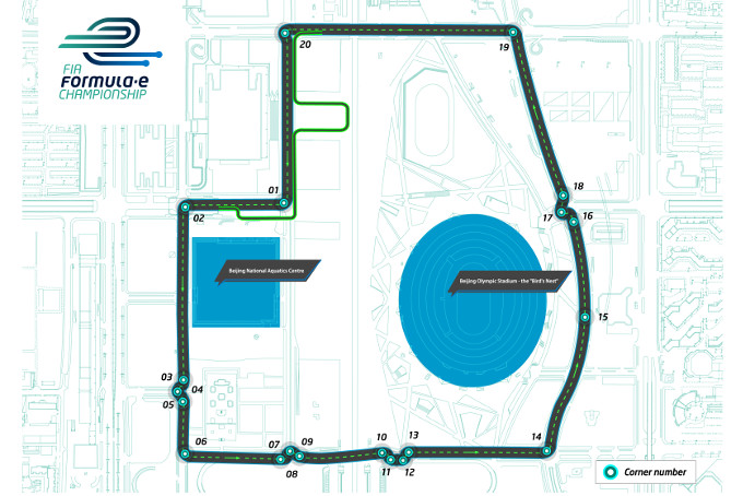 The circuit, which remains subject to final FIA Homologation, boasts an impressive cityscape backdrop taking in both the Beijing National Aquatics Centre and the Olympic Stadium itself. It will see the 20 Formula E drivers tackle a mix of tight left-hand turns – offering late braking and overtaking opportunities – together with twisty chicanes and two main straights. In addition, the track features a unique ‘U-shaped’ pit lane with spectator areas located inside giving fans an incredible close-up view of the action.