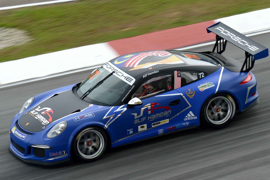 Reigning Porsche Carrera Cup Asia champion Earl Bamber got his title defense off to a strong start this weekend taking a commanding pole position for Round 1 held as part of the 2014 FORMULA 1 PETRONAS MALAYSIA GRAND PRIX weekend. As the astonishing new Porsche 911 GT3 Cup (Type 991) made its debut in Asia, it was local hero Alif Hamdan of Nexus Racing who took the honours in the closely-contested Class B category, ending the 30-minute session an impressive sixth overall.