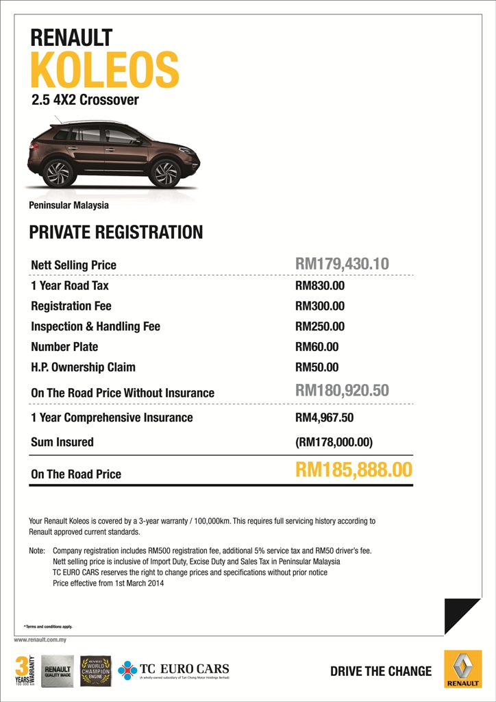 In conjunction with the launch, TCEC has introduced the revised Koleos crossover. The lifestyle multipurpose vehicle carries the same specification as the variant before but it now comes with a friendlier pricing at RM185,888.00 (OTR with Insurance). Visit www.renault.com.my for more information.