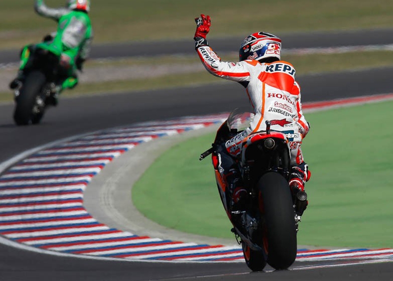 The 21-year-old Spaniard, who fought back from a poor start at the new Termas de Rio Hondo circuit, became the first rider in 43 years to win all of the first three races in the premier category from pole position. Marquez’s Repsol Honda team mate Dani Pedrosa finished second with Yamaha’s Jorge Lorenzo taking third place to complete a Spanish sweep of the podium places.Advertisement Italian Valentino Rossi, who won the opening three 500cc races of the 2001 season and also triumphed in the 250cc category in Argentina in 1998, was fourth. Marquez, who now has a maximum 75 points with Pedrosa on 56 and Rossi third with 41, had slipped to seventh place after being swallowed up by the field at the start as Rossi and Lorenzo hit the front. The race was the first motorcycle grand prix in Argentina since 1999, and first at the circuit some 1,000km north of Buenos Aires.