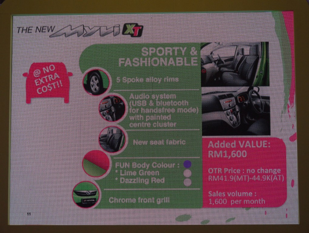 He said that the main target for the Myvi XT is the university students and fresh graduates looking for space, performance, quality yet affordability in a car. Perodua targets to sell 1,600 Myvi XT units per month.