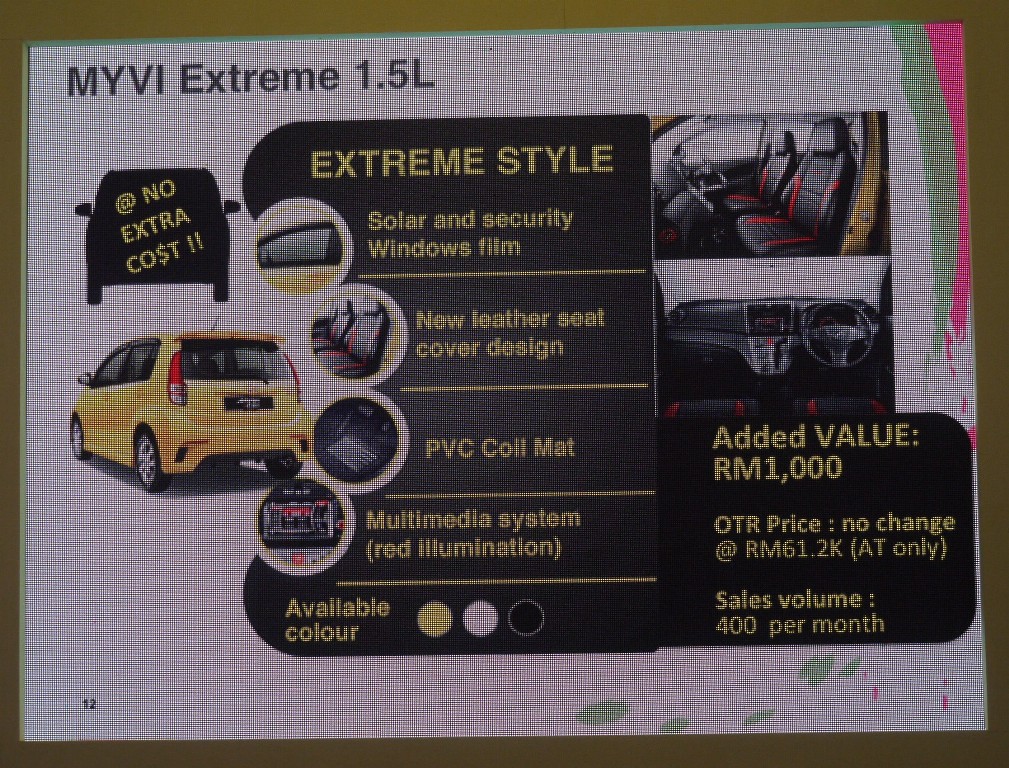 “Despite all the new features for both Myvi XT and Myvi 1.5 Extreme worth between RM1,000 and RM1,600, we are still maintaining the price for both variants,” Aminar said.