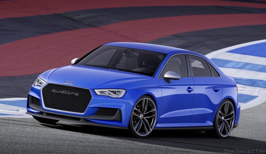 Audi will use this year Worthersee reunion to introduce the new A3 clubsport quattro concept, maybe a preview of a future RS3 sedan. The car is based on the S3 sedan but it features a five cylinder 2.5 liter engine, borrowed from the TT-RS. Instead of delivering 300 hp, as the standard version of the S3, the new A3 clubsport quattro delivers a total of 535 hp and a maximum torque of 600 Nm, delivered on a very wide range, between 2300 and 600 rpm.