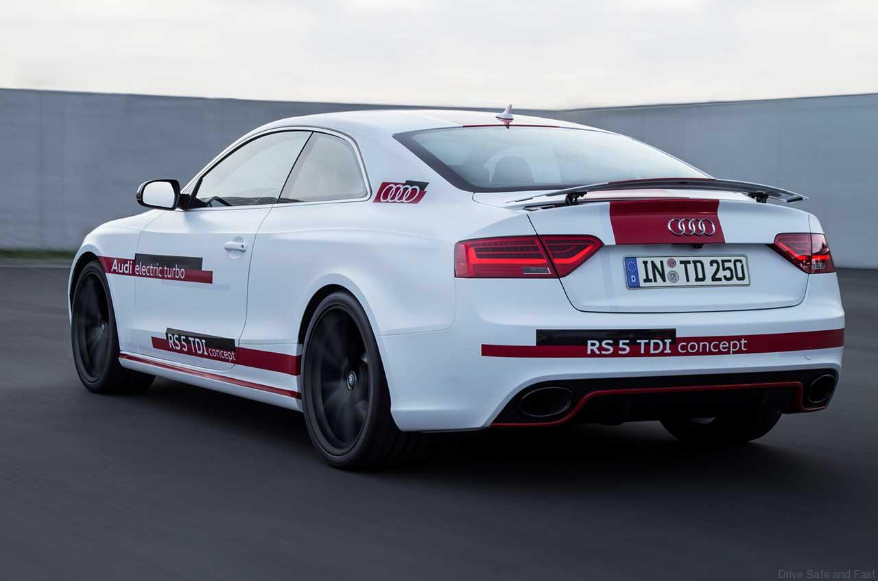 As a result, the Audi RS5 eTurbo TDI Concept is able to accelerate from 0 to 100 km/h in under 4 seconds, while top speed is electronically limited at 174 mph or 280 km/h.