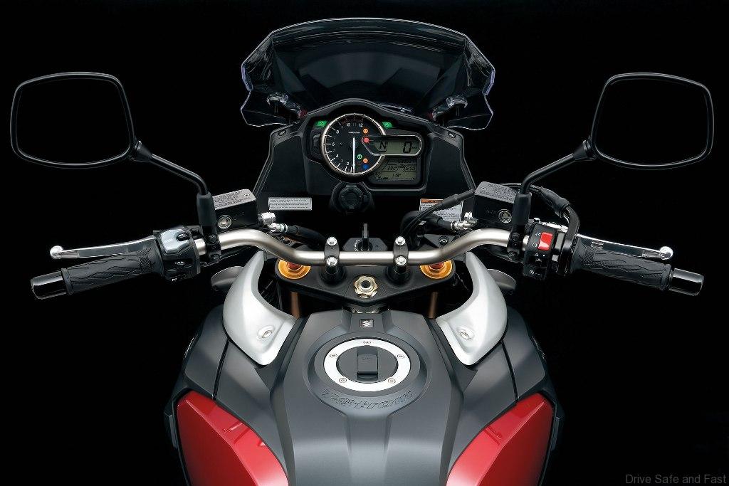 Highlights include a low seat height and slim fuel tank for enhanced ergonomics, a comfortable riding position for both rider and pillion, and a fully adjustable windscreen to reduce buffeting and improve visibility. The V-Storm 1000 also features beefier brakes with latest-generation ABS control, while a 19-inch front wheel and 17-inch rear find a good combination of response and stability. The instrument display is comprehensive, but also ergonomically intuitive. It’s dominated by a large analogue rev counter, augmented by a multi-screen LCD-based trip computer that is rider-configurable to provide a wide range of data, including speed, fuel consumption and key systems status.