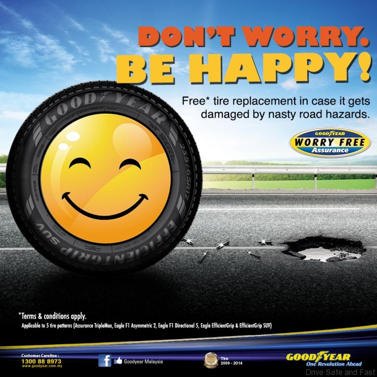 For over 115 years, Goodyear has been a leader in tire technology and innovation, with a focus on creating unique products and services that enhance performance. With this in mind, Goodyear Malaysia is delivering greater assurance to drivers by offering its Worry Free Assurance program. This provides replacement tires on selected Goodyear tire patterns for road hazard damage that is beyond repair*.