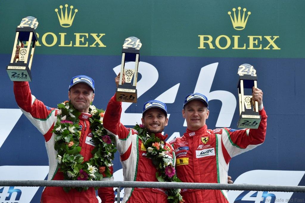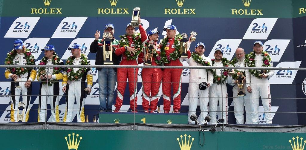 Having started from pole in the class, Bruni dominated the early hours, but then, in wet conditions when two downpours hit the Sarthe circuit, the car struggled and had to give best to Chevrolet and Porsche. The Ferrari men didn’t lose heart and once the  track dried out, began an amazing climb up the order. The Ferrari 458 beat off prestigious names such as Chevrolet, Aston Martin and Porsche, companies that are also rivals in the marketplace. The win owed a lot to the quality of the drivers but also to the exceptional reliability of the cars. The winning car had not the slightest problem.