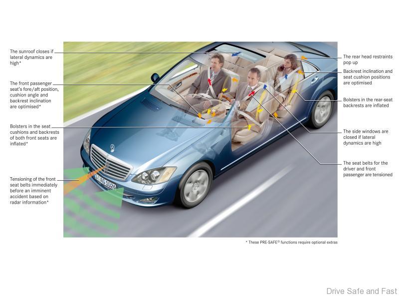 • PRE-SAFE® PLUS can identify an imminent rear-end collision and then prompt the PRE-SAFE® system to trigger occupant protection measures that reduce the forces exerted on passengers. If the vehicle is stationary, it can also prevent secondary accidents in the event of a rear-end collision by applying the brakes