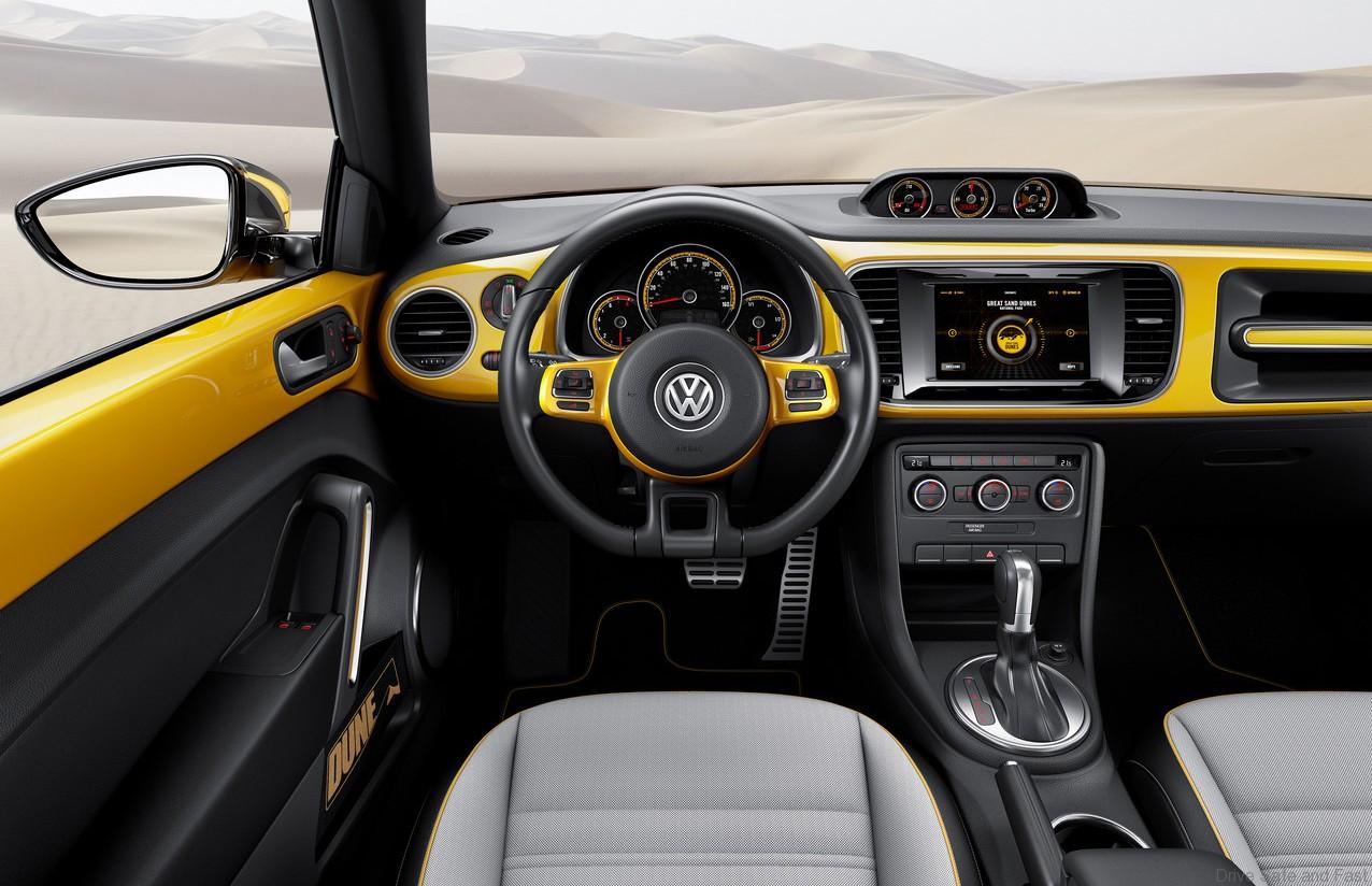 Mechanically, the Dune uses the running gear from the Beetle R-Line. Underhood, there’s a 210-hp turbocharged and direct-injection TSI® 2.0-liter four-cylinder engine. Combined with a six-speed DSG® dual-clutch automatic transmission, the Beetle Dune has a manufacturer estimated fuel economy rating of 23 mpg in the city and 29 mpg on the highway. The car retains the Beetle’s front-wheel-drive layout and strut-type front suspension and multilink rear arrangement.