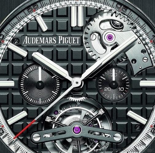 Today, the latest AP ROO Offshore Tourbillon Chronograph is back in forged carbon with the automatic mechanical AP caliber 2897 . The inner tachy scale is a sapphire ring is new, as is the open movement architecture at 1 o’clock, exposed through the “Méga Tapisserie” dial; the chrono subs at 3 and 9 do look a bit small, or is it just me. Audemars Piguet Royal Oak Offshore Selfwinding Tourbillon Chronograph 44mm x 14mm forged carbon case, black ceramic bezel/crown/pushers, titanium pushpiece guards, automatic mechanical AP caliber 2897 (tourbillon, column-wheel chronograph, 3Hz/21,600vph, platinum rotor),on black rubber strap with titanium pin buckle black dial with “Méga Tapisserie” pattern, black counters, gold applied hour-markers and gold Royal Oak hands with luminescent coating; sapphire inner ring hours and minutes / small seconds (9 o’clock) / central chronograph seconds hand, 30-minute counter (3 o’clock). Finishing: all parts finely hand decorated; bridges and mainplate rhodiumed, circular-grained, beadblasted and hand-drawn with file strokes; polished angles, bevelled screw rims and slots, Peripheral oscillating weight in circular satin-brushed 950 platinum. Price at around USD290,000.00 this is a real collectors edition.