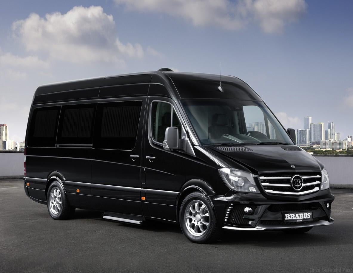 The seats were covered in the company upholstery shop in the exclusive style of the BRABUS fine leather appointments with a stylish two-tone cognac and mocha combination of especially soft and breathable and yet durable Mastik leather. The sides of the seats sport a combination of Alcantara and high-gloss white surfaces. The genuine-wood floor is designed as a veneer without tongue and groove. For a perfect and draft-free feel-good atmosphere under all climatic conditions a special climate control system was developed for the spacious passenger compartment of the Sprinter in cooperation with German OEM Eberspächer. It has a heating output of 10 kW and a cooling output of 13 kW, and is discretely integrated into the Sprinter to make it visually and acoustically unobtrusive. The desired privacy is provided by dark-tinted glazing and eight power-operated curtains on the side and rear windows. A total of three power-retractable tables can be used for a variety of purposes. A refrigerator and a coffee maker, both located in a center console between the business seats, provide additional amenities. Eight USB 3.0 ports and three 220 volt outlets for powering the passengers’ notebooks, tablets and smartphones are located within easy reach. A total of six dimmable reading lights provide perfect lighting for perusing files, books or magazines on all seats.