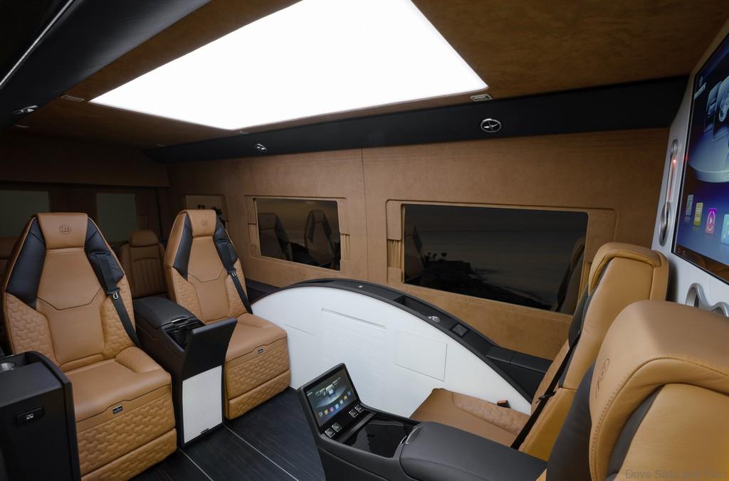 The BRABUS Business Lounge special model based on the Mercedes Sprinter is built to order and available in various versions with four or six seats in the passenger compartment.