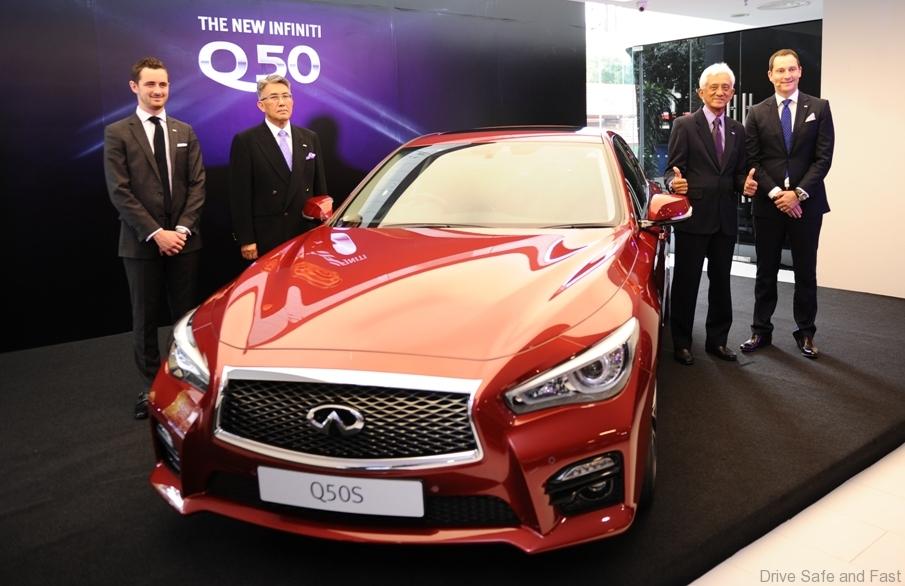 Infiniti Malaysia launched the all new Q50 sports sedan at the newly relocated INFINITI Center Kuala Lumpur situated at The Icon, Jalan Tun Razak. While Infiniti vehicles have always been noted for their outstanding proportions and presence, the new Infiniti Q50 adds a new dimension, reflecting the direct influence of Infiniti’s exciting design language.The signature Infiniti exterior design features include the powerful ‘double arch’ grille, the dynamic wave shoulder-line and crescent-cut C-pillar. The front end is decidedly aggressive, with a sporty front fascia offered on the Q50 sports model.The Q50 is powered by a responsive and highly efficient 2.0-liter direct-injection four-cylinder turbo engine delivering 211hp of power and 350Nm of torque to sprint from 0 – 100km/h in 7.2 seconds, while sipping just 1 liter of petrol per 13.6 km.