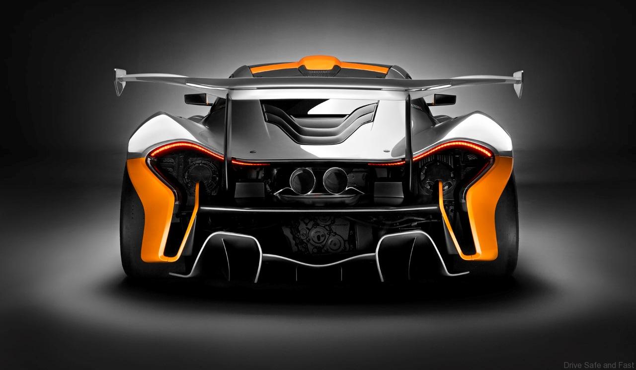 Below the rear wing sits the exposed, centrally mounted exhaust, which is an all new design, developed exclusively for the McLaren P1™ GTR. Made from inconel and titanium alloy, the system maximises the aural characteristic of the higher output 3.8-litre twin turbo V8 engine to maintain, and further emphasise, the McLaren sound. The design of the exhaust has also changed, with a straight cut twin pipe setup now used in place of the single exit exhaust.