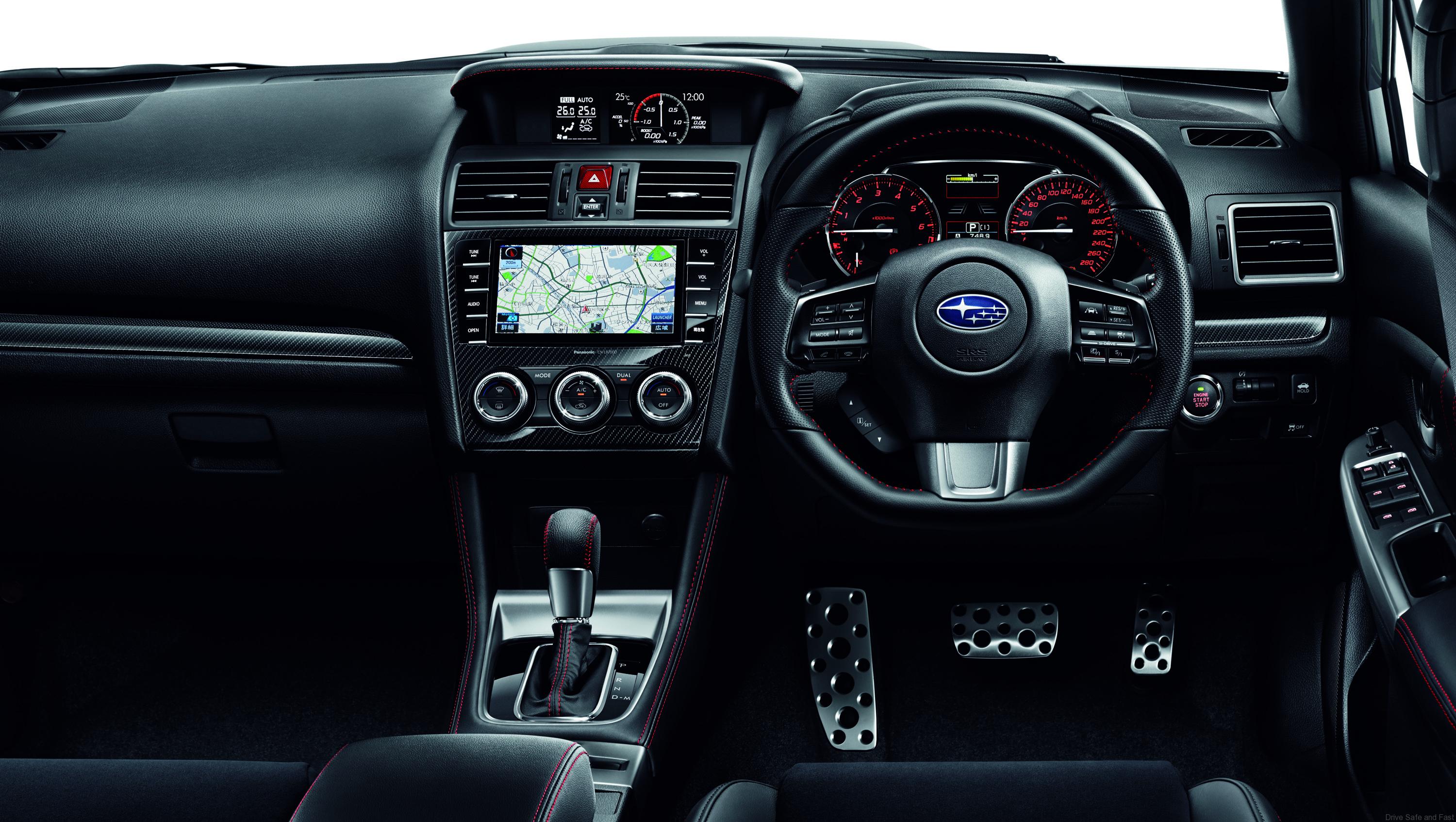 - Decorative carbon trim panels and metal trim accents have been arranged around the interior, centered on the controlling elements. This gives the interior a quality feel and harkens back to the WRX racing image.