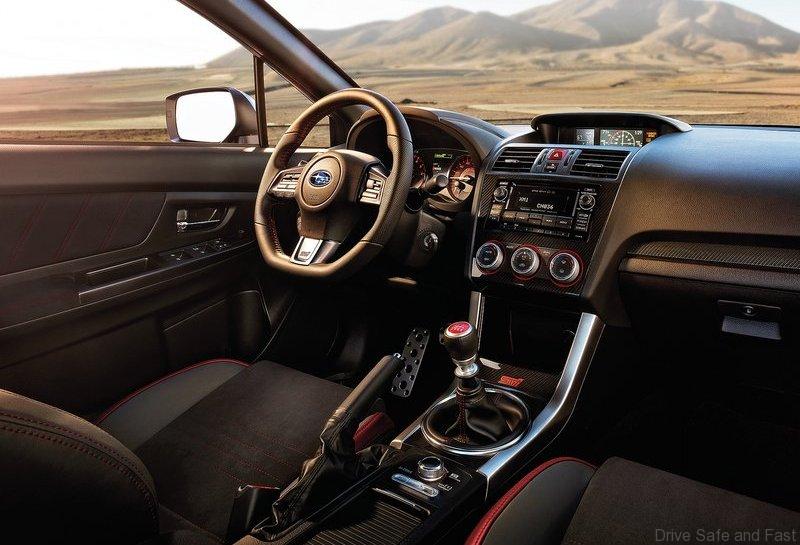A one-inch longer wheelbase than the previous WRX STI helps provide a roomier cabin in the new model. The windshield is more raked than before, with the A-pillar pulled forward nearly eight inches at the base for better forward visibility, aided by a lower dashboard and narrower A-pillars. Lower side sills and wider-opening doors make ingress/egress easier.