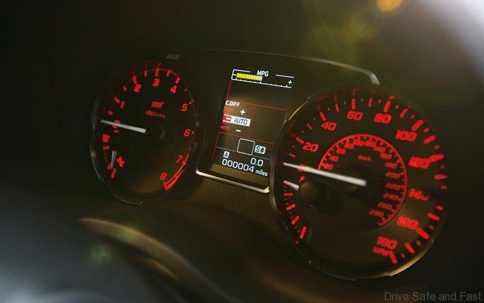 In the 2014 WRX STI, the driver grips a new flat-bottom, leather-wrapped tilt/telescoping steering wheel that integrates switches for audio and Bluetooth control. The STI Design electroluminescent gauge panel gets a new 3.5-in. central LCD screen that displays various functions, including low-level warnings for oil and windshield washer fluid and the selected gear.