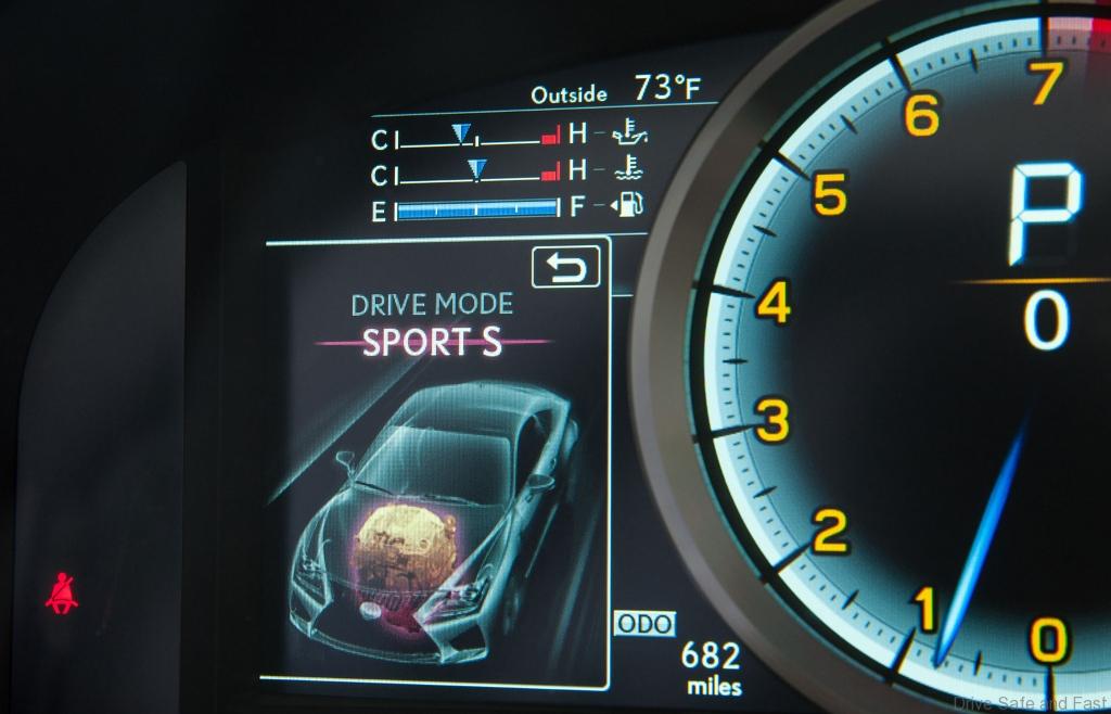 The eight-speed Sports Direct Shift transmission with paddle shift controls is adapted from that used previously in the IS F, optimised for power delivery and economy. In M (manual) mode, full torque converter lock-up from second to eighth gear allows for downchanges in just two tenths of a second.