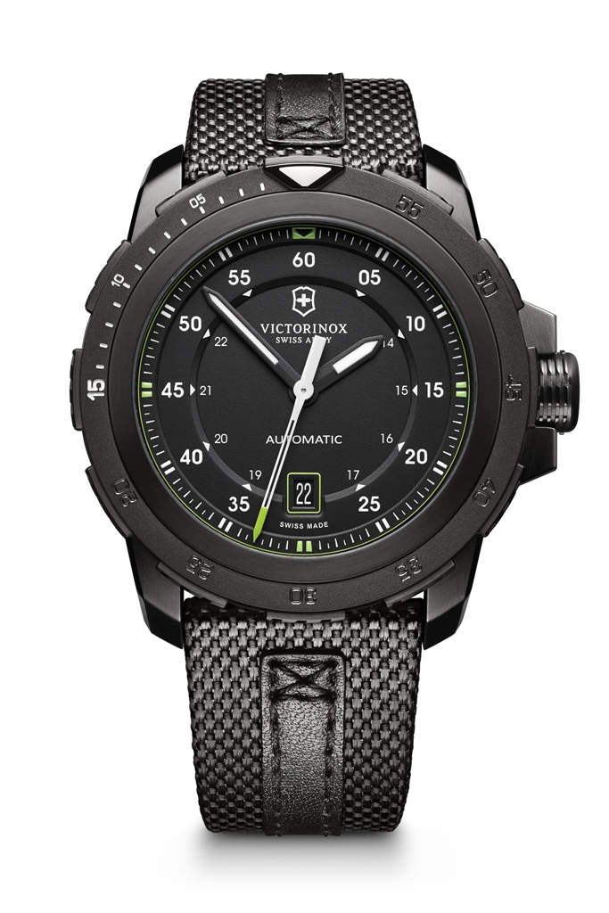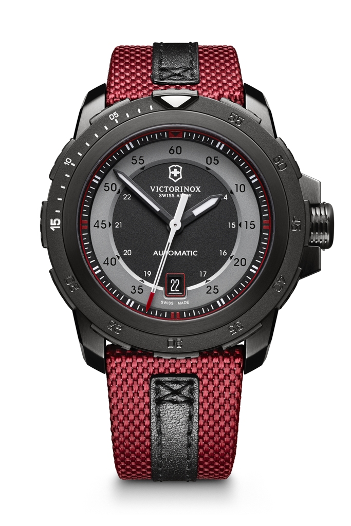 The engine of this machine is an automatic winding ETA 2824 movement, housed inside a 44mm stainless steel case. The black PVD coating enhances its technical and masculine appearance. The strong character and design of these uniquely constructed watches are sure to appeal to everyone who knows Victorinox. They are, like every product manufactured by the maker of the legendary Swiss Army Knife, true “companions for life.”