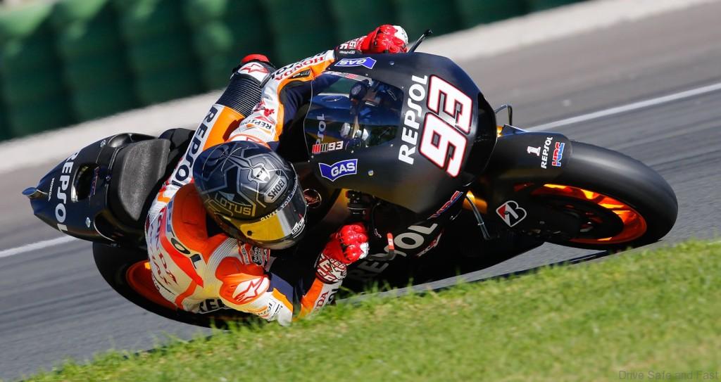 Marquez (Repsol Honda) set a record-breaking time of 1’59.791s to secure pole ahead of teammate Pedrosa (Repsol Honda) who was 0.182s slower. The front row was completed by Lorenzo (Movistar Yamaha) who set a 2’00.203s best lap.