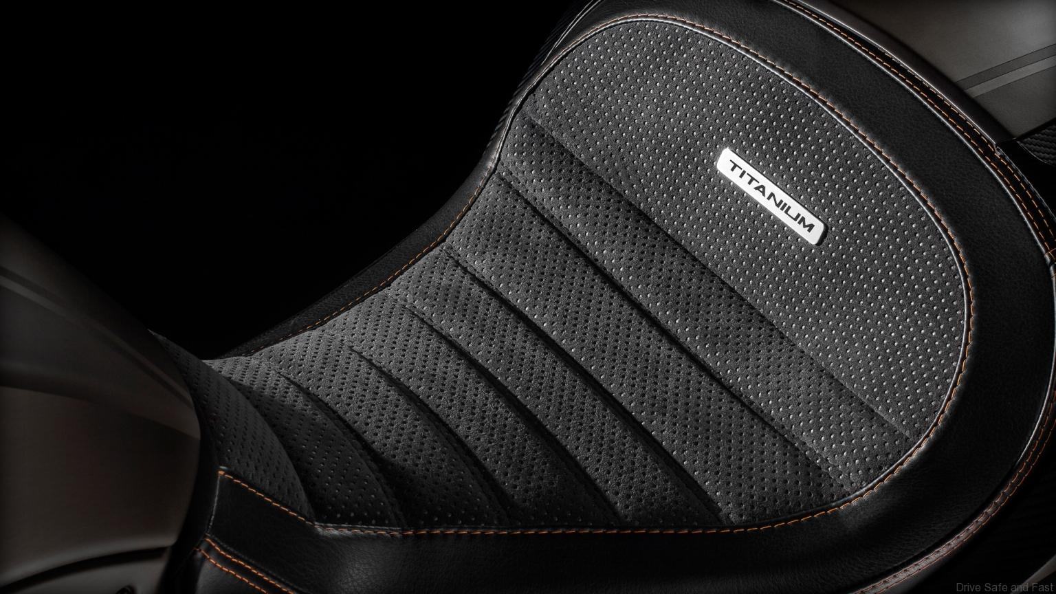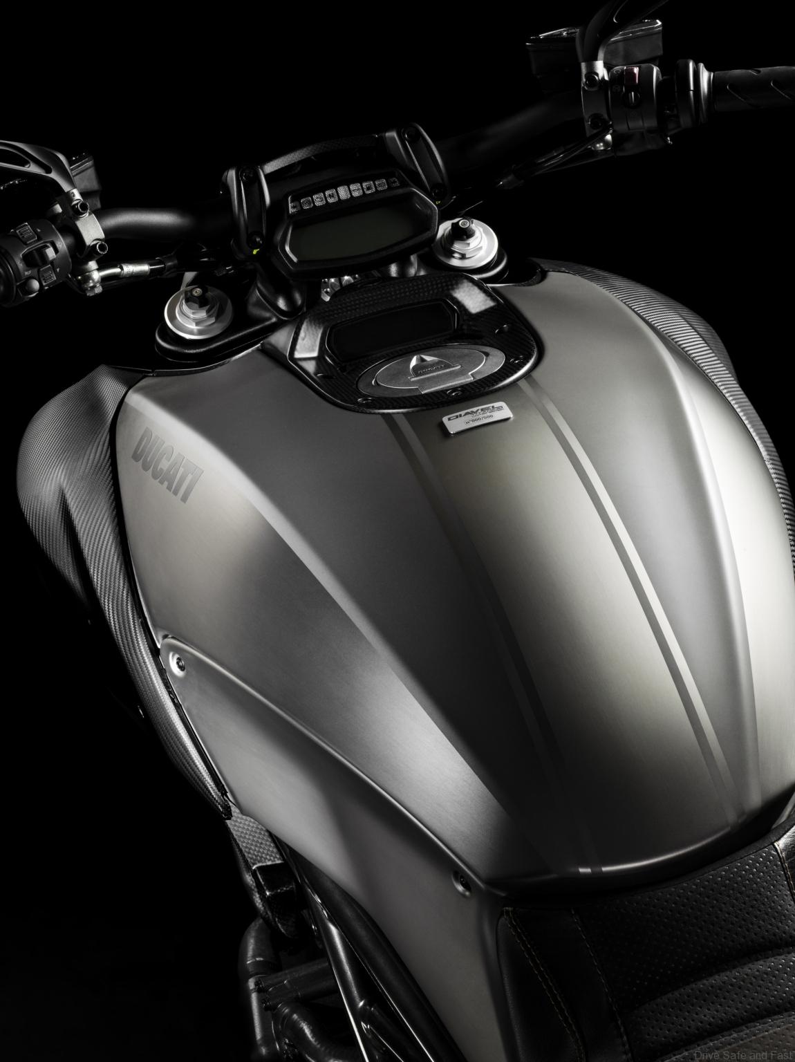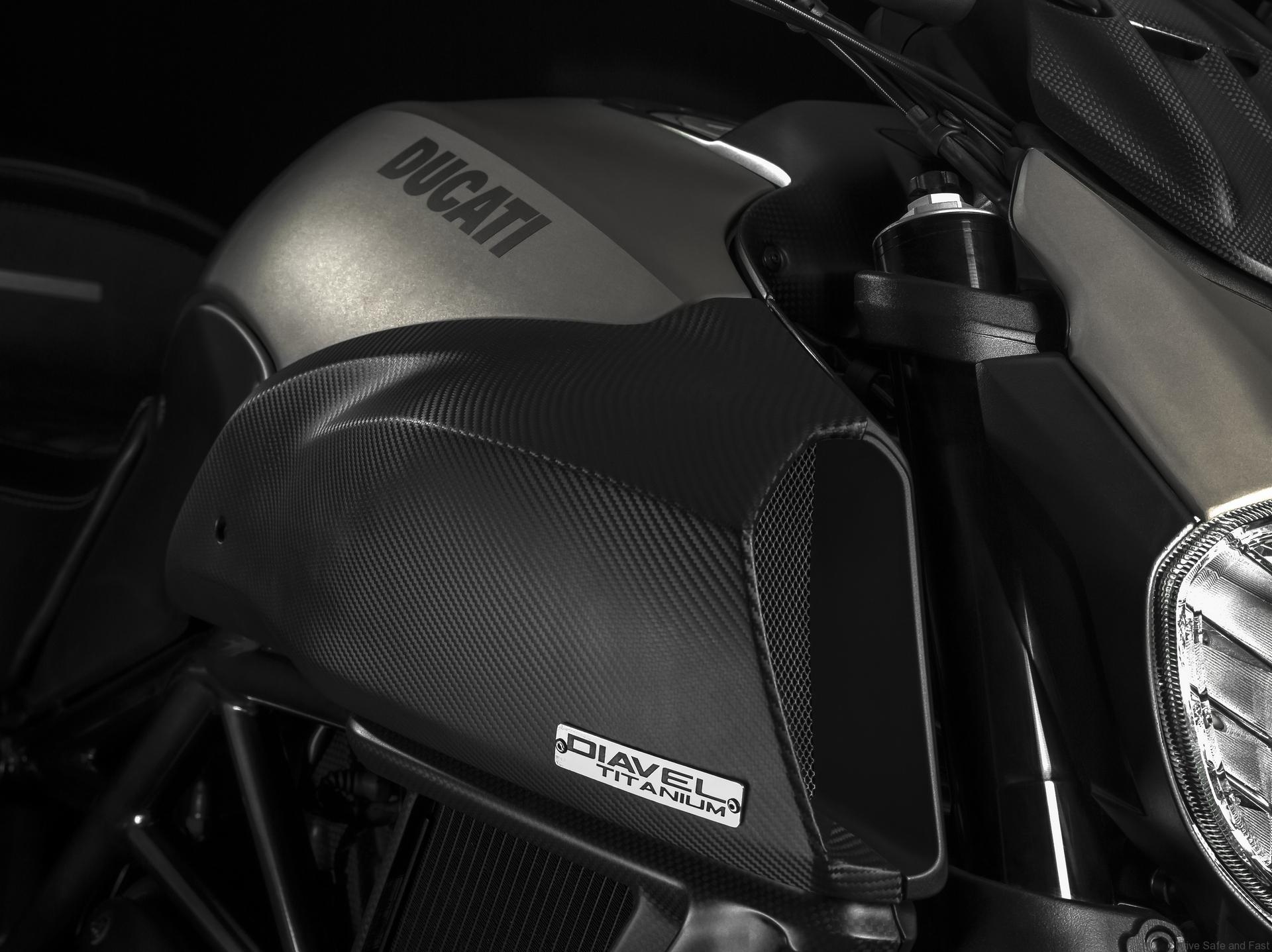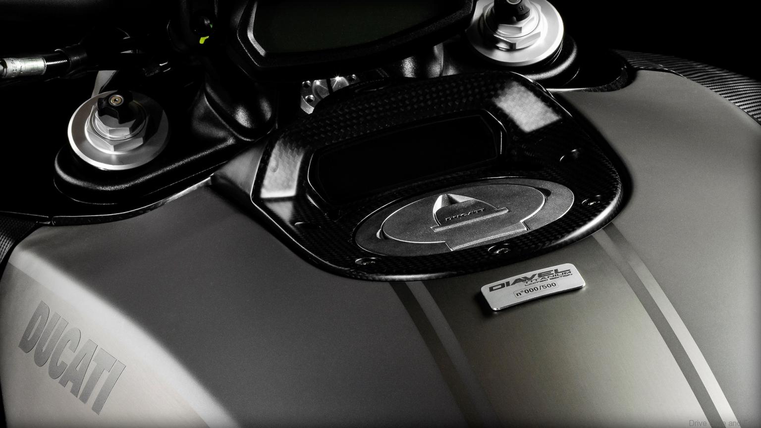 Ducati Diavel Titanium machines can be distinguished by the numbered tank-mounted plates. The bike has a 205kg dry weight and a kerb weight of 234kg. No price was announced so far, but we expect it to slot a couple of thousands more than the base version.