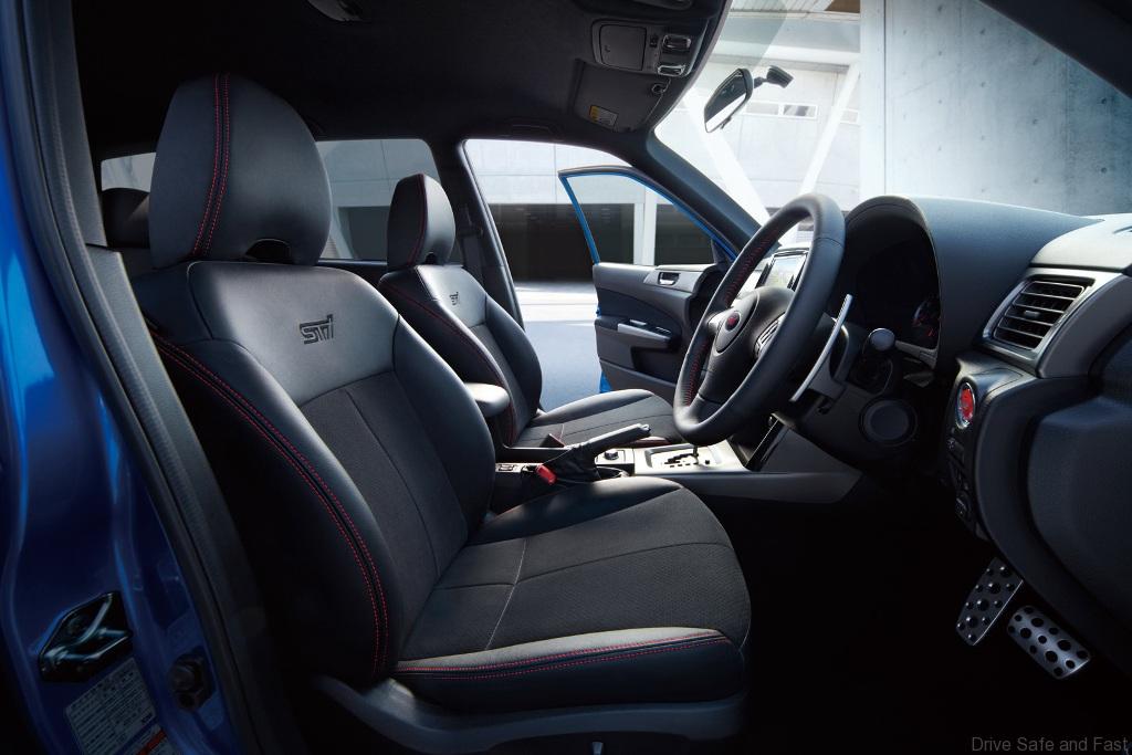 STI says, “This is a complete STI car that was thoroughly pursued.” What’s inside? Forester tS comes with an STI-enhanced cabin and features a sports luminescent 260km/h display with STI logo, leather-wrapped steering wheel with red stitching and STI logo, STI push-button start, Kawamaki shift lever (STI logo), Black leather seats/door trim with red suede accents and red stitching, carbon-style instrument panel, silver dial & piano black air conditioning switch (with red bezel), Black Interior Madokata pillar and roof trim and side sill plate with STI logo. STI also added extra sound insulation material and special STI floor mats to finish out the interior. Exterior STI treatments.