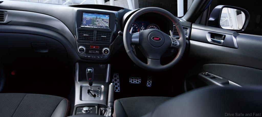 This special Forester sits 15mm lower than the regular SUV and gets a special STI suspension setup and tuning for performance driving dynamics. Underneath it features 19-in BBS aluminum wheels wrapped in 245/45R19 Turanza ER33 performance tires, 17-in ventilated Brembo disc brakes both front and rear with red STI logo, a track-tested STI-tuned suspension, flexible tower bar, draw stiffeners both front and rear, a flexible support sub-frame in the rear, dedicated ECU unit, dedicated TCU transmission control unit and a oil cooler for the 8-step CVT automatic. The CVT features an S # mode (Sport) on the SI-DRIVE for performance driving.