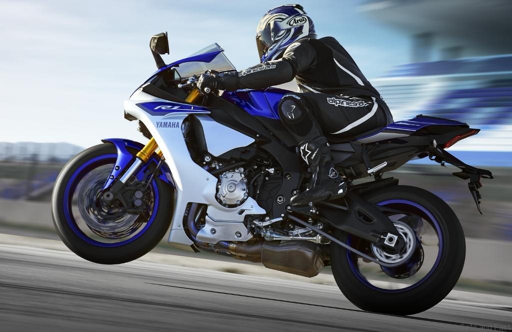 Yamaha’s new R1 machine is powered by an all-new 998cc crossplane engine which can produce 200hp at 13,500 rpm and 112.4 Nm of torque at 11,500 revs. Mated to a manual 6-speed transmission, it sits in a new Deltabox aluminium frame. The 2015 R1 is also the first production motorcycle to sport titanium fracture-split connecting rods, we are told.