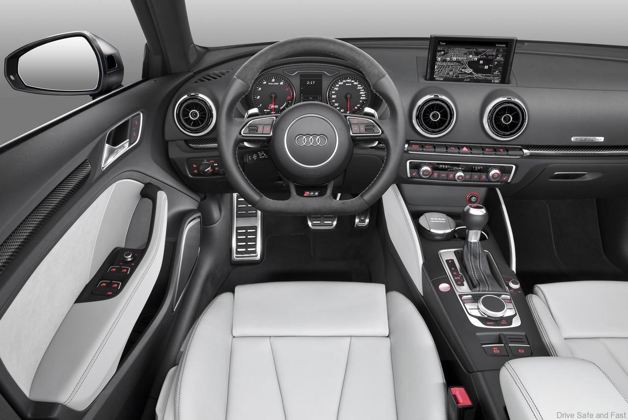 The infotainment and driver assistance systems from the A3 series, including MMI navigation plus with MMI touch, are available without restriction in the new top model. The comfort and convenience package includes features such as power-adjustable and heated front seats, four-way lumbar supports, automatically dimming exterior mirrors and a light and rain sensor.
